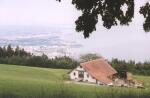 Außerhalb der Ortschaft, es dämmerte schon, wollten wir einen passablen Zeltplatz suchen, aber das war garnicht so einfach. Ein uraltes Paar, durch dessen Bauernhof die Landstraße führte (die einige Schweizer für eine Rennbahn zu halten schienen, aber tiefergelegte Golffahrer gibt es ja auch bei uns zur Genüge...), wies uns dann den Weg zu einer geeigneten Wiese, die nicht allzu steil war.